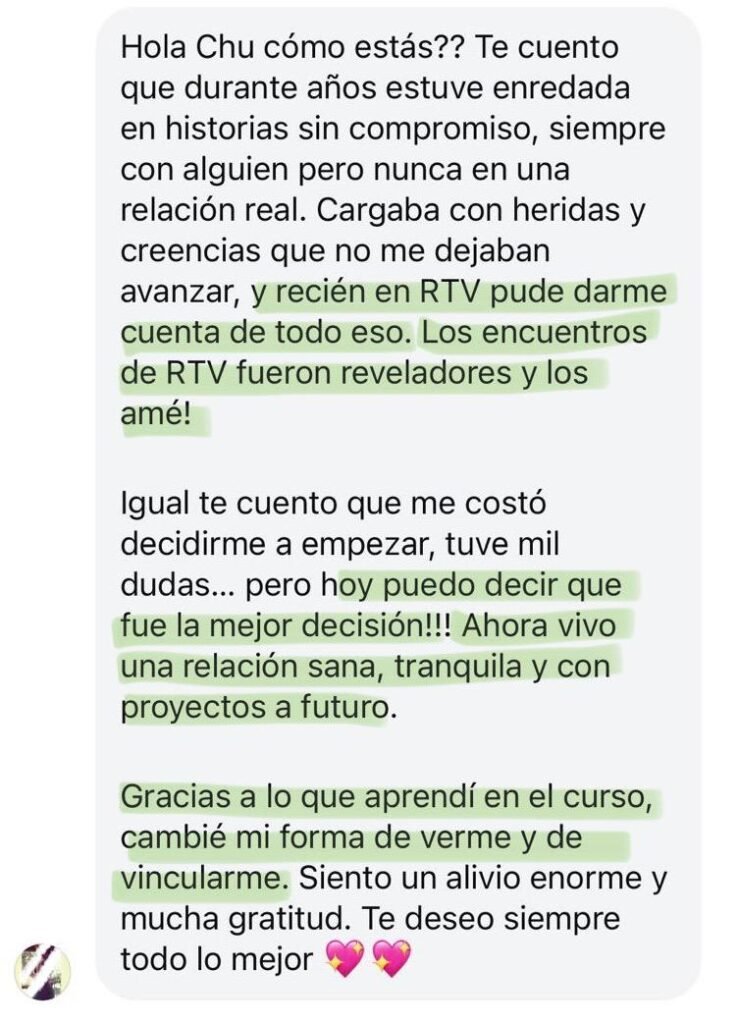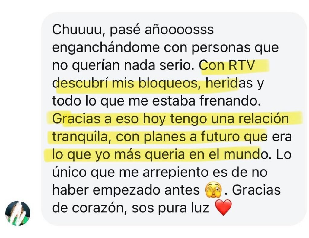 Este proceso te va a permitir empezar a sanar desde la raíz, reconectar con tu valor y abrir el camino hacia relaciones más sanas, recíprocas y livianas. Sin culpas.